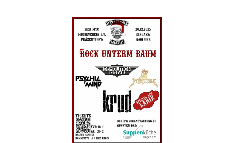 Auch dieses Jahr wieder werden alle Erlöse aus der Veranstaltung für gemeinnützige Zwecke gespendet und unser diesjähriger Partner für das Event ist die Hagener Suppenküche e.V.