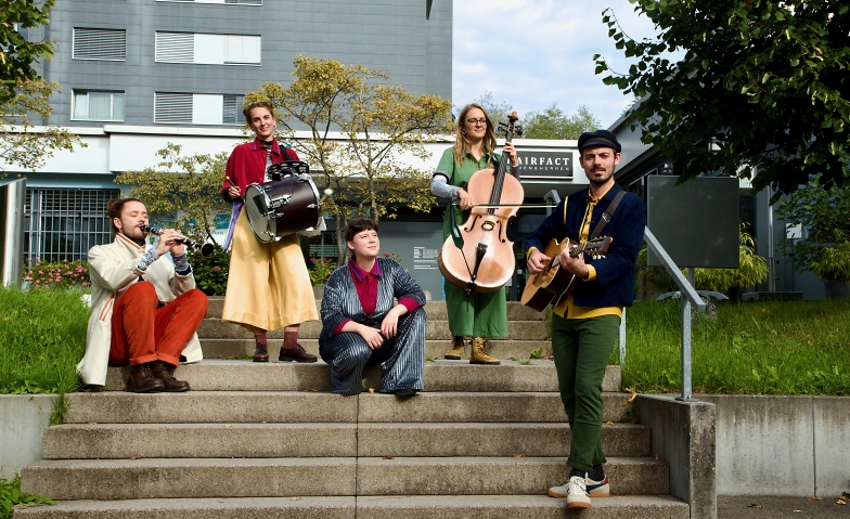 Die Band Radioprojecteur und die Performerin Meret Schmid bespielen sämtliche Winkel des Schenkhaus: Garderobe, Zuschauer:innenraum, Raucher:innenecke, Bar – egal, alles passt, alles wird Szenerie und Teil der konzertanten Performance. Inspiriert von ihrer Spazierkonzert-Reihe führen die Musiker:innen das Publikum durch das Schenkhaus. Die Musik ist meist akustisch und unverstärkt und erzählt von der poetischen Suche nach einem Zuhause. Radioprojecteur spielt sich durch ihr diverses Instrumentarium – Meret Schmids Instrument ist der performative Tanz, der sie zum fünften Bandmitglied werden lässt.