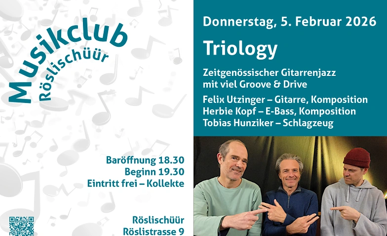 Die beiden Zürcher Saitenvirtuosen Felix Utzinger und Herbie Kopf spielten schon in den 90er Jahren zusammen. Inzwischen mögen’s beide auch etwas lyrischer und verspielter, ohne aber auf die nötige Brisanz und Dynamik verzichten zu wollen. Wohldosierte Energieschübe und echte Spielfreude sind wichtige Elemente ihres Zusammenspiels. Im Frühjahr 2025 stiess der vielseitige Schlagzeuger Tobias Hunziker dazu und bereichert nun die Musik mit seiner unmittelbaren, unbeschwerten Art.