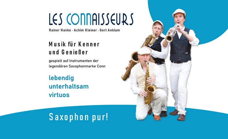 Les Connaisseurs entführen ihr Publikum in eine Klangwelt voller Leidenschaft, Eleganz und Spielfreude – gespielt auf drei Saxophonen der legendären Marke Conn aus den 1930er-Jahren, deren warmer, charaktervoller Ton bis heute begeistert.