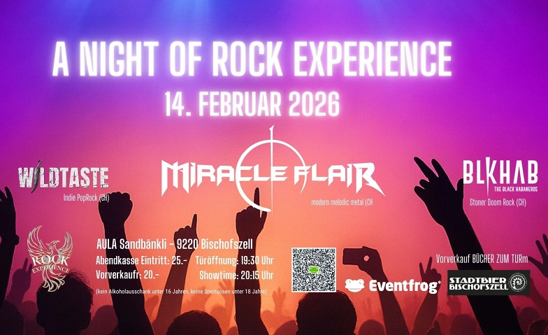 Am 14. Februar 2026 erwartet Rockliebhaber ein energiegeladener Abend der Extraklasse. In der AULA Sandbänkli in Bischofszell findet der nächste Event "A Night of Rock Experience" statt, bei dem drei herausragende Bands aus der Region live auf der Bühne stehen. Die Veranstalter legen besonderen Wert darauf, regionale Künstlern auf die Bühne zu bringen und garantieren eine musikalische Vielfalt, die keinen Rockfan enttäuschen wird.