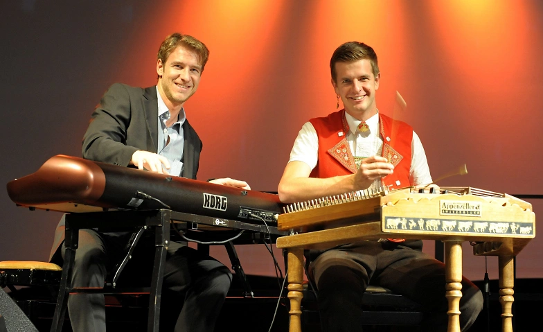 Wenn der Hackbrettler Nicolas Senn auf den Boogie-Woogie-Pianisten Elias Bernet trifft, prallen zwei musikalische Welten aufeinander, die überraschend wohlklingend harmonieren. Mit ihrer kreativen Offenheit wagen sich die beiden Musiker vom traditionellen Appenzeller Wälserli zum packenden «Hack’n’Roll» und lassen verschiedene Stile verschmelzen. In einem packenden Duell beeindrucken die jungen Ostschweizer mit ihrer Virtuosität und zeigen sich von ihrer humorvollen Seite. So wird die unerwartete Kombination von alpenländischen Hackbrettklängen und bluesigen Piano-Grooves zu einem mitreissenden Ohrenschmaus. Ob im Bundeshaus, in New York, im KKL, am Unspunnenfest oder am Heitere-Openair – überall reagieren die Zuhörer mit Begeisterung und tosendem Applaus. So auch beim letzten Mal bei uns. Deshalb müssen sie wiederkommen. Judihui!