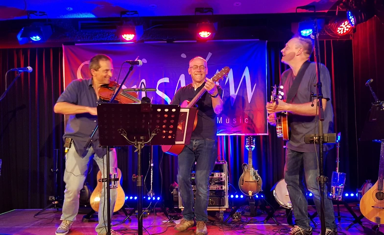 Das Trio spielt seit über 30 Jahren Irish Folk: Songs über Land und Leute wechseln mit traditionellen Jigs und Reels. Martin Hoffmann, Volker Abrahamczik und Gerhard Kalter lieben die Lust am spontanen Spiel und durchstreifen musikalisch die verschiedenen Landschaften der grünen Insel mit Geige, Gitarre, Mandoline, Banjo und Irish Bouzouki.