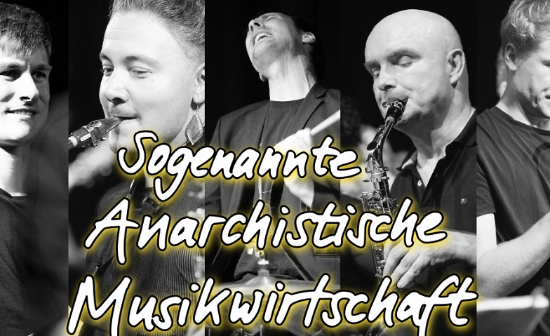 Die Sogenannte Anarchistische Musikwirtschaft ist Berliner Blas-Pop-Punk mit der Kraft eines Bulldozers. Der Name ist Programm: geblasene Anarchie zwischen Ernst und Wahnsinn, mal politisch, mal lässig – mal ernst, mal spaßig. Energiegeladen, mit voller Hingabe und fast immer tanzbar preist die Sogenannte Anarchistische Musikwirtschaft das Leben. Keine Melodie ist vor dem Ensemble sicher. Mit raffinierten, eigenen Arrangements für Blech, Holz, Rhythmusgruppe und Gesang fügt die Sogenannte Anarchistische Musikwirtschaft genre- und epochenübergreifend zusammen, was schon immer zusammengehörte: Deichkind trifft auf Ton Steine Scherben, Prokofjew auf Trettmann und Britney Spears auf Blasmusik. Treibende Rockmusik, tanzbare Balkanbeats, funkige Grooves und hymnisches Pathos verbinden sich zu einem Gesamtprogramm. Eisler als Erfinder der Punkmusik ist dabei Fundament und Brücke zugleich. Zwischendurch gibt es Moderationen voller Wortwitz und unerwarteter dialektischer Wendungen. Gegründet 2012, aber mit einer langen Vorgeschichte, ist die Sogenannte Anarchistische Musikwirtschaft bei ausgedehnten Partynächten in Kneipen und Tanzsälen ebenso zu Hause wie in der Waldbühne, bei Vernissagen, Kunstprojekten und Straßenfesten. Programmatische Projekte mit befreundeten Künstlern wie Rainald Grebe oder dem Bachmann-Preisträger Peter Wawerzinek sind Herzenssache.