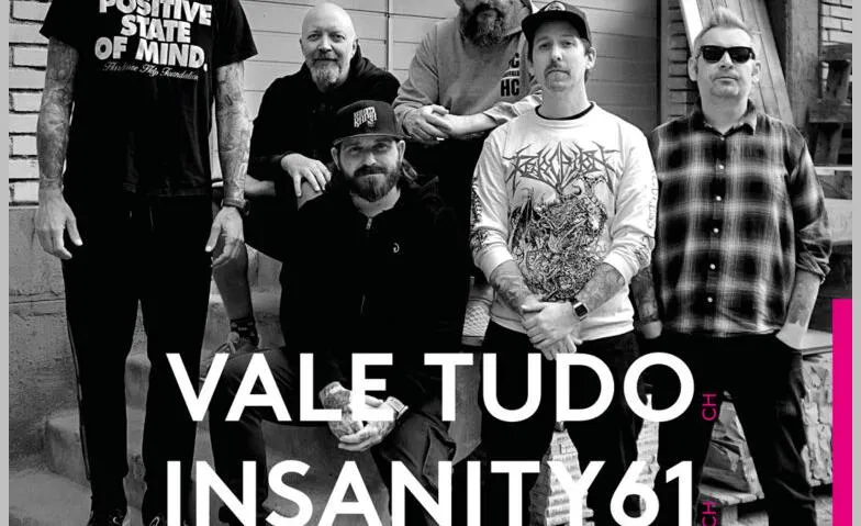 Die Zürcher Hardcore Schwergewichte Vale Tudo sind auch nach 19 Jahren Bandgeschichte noch kein bisschen müde. Kaum eine Schweizer Band hat so schweisstreibende und energiegeladene Shows wie die Heavyweights Vale Tudo. Zusammen mit Insanity61 bringen sie die Gaswerk Bühne zum beben.