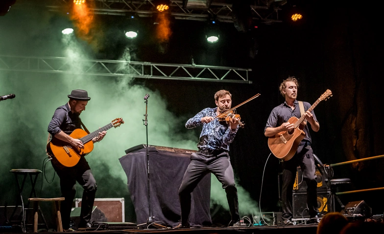 Die Gitarrensaiten glühen, der Geiger verzaubert mit atemberaubender Virtuosität auf der Violine: Mit der Energie ihrer Kompositionen zieht das Wiener Trio seit Jahren weltweit das Publikum in seinen Bann!