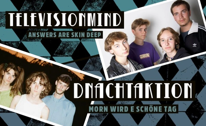Kennst du diesen Geruch, wenn der Keller schwitzt, die Verstärker röcheln und die ganze Band nur zwei Akkorde davon entfernt ist, spontan zu explodieren? Das ist televisionmind. Gegründet 2022 brachte diese aufregende Neuentdeckung schon im April 2024 bei „Small Town Sounds“ unsere Bühne zum Glühen und sie werden dies nun wieder tun in einem Doubleheader mit dnachtaktion! Die beiden Bands sind nicht per Zufall verwandt und sie jagen auch keinen Trends hinterher – sie setzen sie. Wie sie klingen? Schrille Gitarren, raue Stimmen und Drums, die nicht einfach den Takt halten, sondern DICH in die Knie zwingen! Wilde Post-Punk-Hymnen – langsame Indie-Balladen, die schmerzen statt betteln – und eine totale Weigerung, auf Nummer sicher zu gehen. Eine waschechte Teenager-Band, die Anfang 2026 nun ihre Debüt-EP „Answers Are Skin Deep“ in die Welt setzt. Sie ist eine Leuchtrakete in die Dunkelheit und wie ein Schrei aus dem Keller! Das ist keine Musik für die Charts. Sie ist für die Zerbrochenen, die Rastlosen, die Kids, die immer noch glauben, dass Lärm sie retten kann. Es ist keine Veröffentlichung. Es ist eine Abrechnung. Erlebe sie jetzt – solange sie noch nach Kellerschweiß und Teenagerträumen riechen. LIVE & DIRECT!