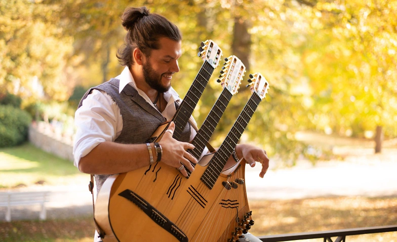 Mit 54 Saiten, Didgerioos und Loopstation holt Patiz die Welt ins Konzert.