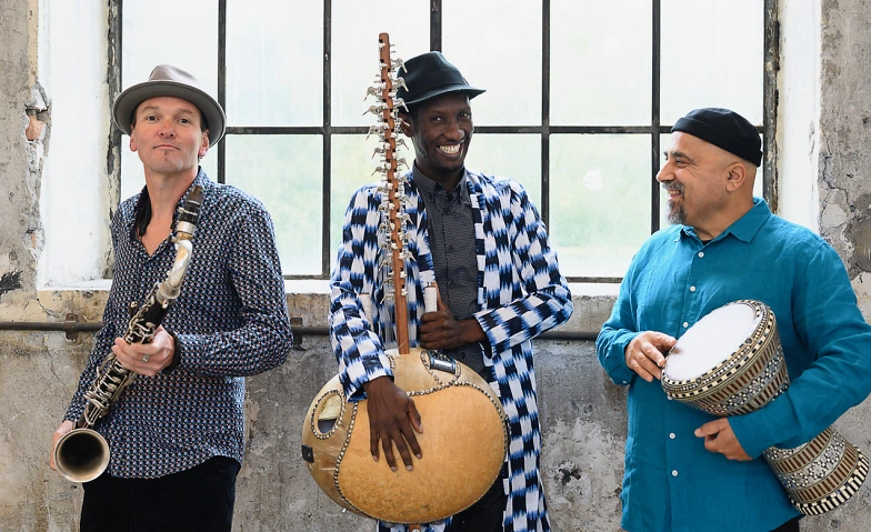 JMO sind nicht nur die Anfangsbuchstaben der drei Musiker, sondern auch die drei Haupteinflüsse in deren Musik: Jazz – Mandinka – Orient. Der perlend klare Klang der Kora trifft auf die sonoren, rauchigen Töne der Bassklarinette und wird unterstützt von verschiedenen Perkussionsinstrumenten. Das Trio überschreitet gekonnt die Grenzen zwischen traditionellen und modernen Klängen aus Afrika, Europa und dem Orient. Das Repertoire stammt von allen drei Musikern und zeigt ihre unterschiedlichen Einflüsse. Das Aufeinandertreffen der drei Kulturen, die Auswahl der Instrumente und der reiche Fundus an Ideen, Melodien und Rhythmen macht die Musik zu einem unvergesslichen Hörabenteuer!