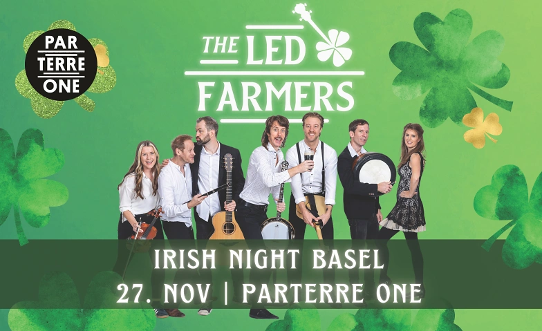 Tauchen Sie mit uns ein in eine spektakuläre Feier der irischen Kultur! Wir freuen uns riesig, The Led Farmers bei uns begrüßen zu dürfen – eine mitreißende Upbeat-Irish-Folk-Band, die ihren Sound von den Straßen Dublins auf die großen Bühnen in den USA und ganz Europa gebracht hat. Mit ihren mehrfach preisgekrönten Musikern (darunter „All-Ireland Champions“) gelten sie heute als einer der besten irischen Live-Acts auf Tour.
