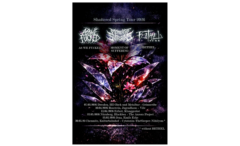 As We Fucked – Seit 2021 steht As We Fucked für kompromisslosen, emotional aufgeladenen Melodic Death Metalcore mit Tiefe und Intensität. Ihr Sound verbindet erdrückende Härte mit eindringlichen Melodien, düstere Atmosphären mit explosiver Live-Energie – Musik, die besonders auf der Bühne richtig zum Leben erwacht. Mit zahlreichen Shows in Deutschland, der Schweiz und Polen hat sich die Band bereits einen Namen in der Szene gemacht. Ihr Debütalbum “The Burden” ist ein kraftvolles Statement voller roher Energie, Schmerz und intensiver emotionaler Ausdruckskraft – und wurde sowohl von Fans als auch von Metal-Medien sehr positiv aufgenommen.