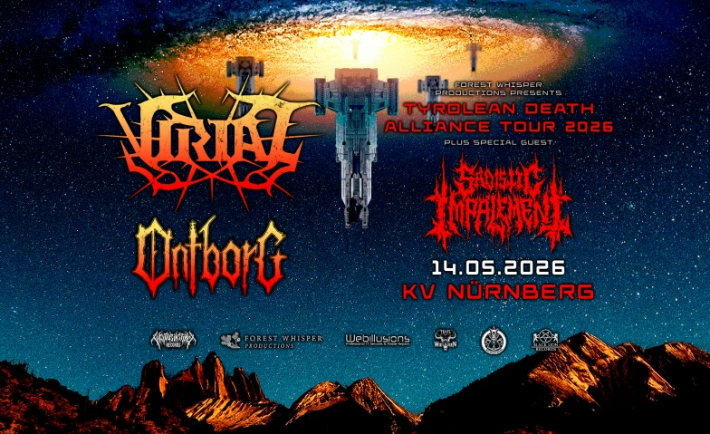Nach der erfolgreichen Österreich Tour im Jahr 2025 ist das Tech Death Raumschiff VIRIAL nun auf dem Weg in ausgewählte Locations in Deutschland und AT. Für die Fortsetzung der “Tyrolean Death Alliance Tour” wird zur Zeit mit Hochdruck an der Entwicklung von neuen Hochgeschwindigkeitsgeschossen gearbeitet - in der Zwischenzeit gibt es mit den Alben “Organic Universe” und “Transhumanism” schon mal was zum Kauen!