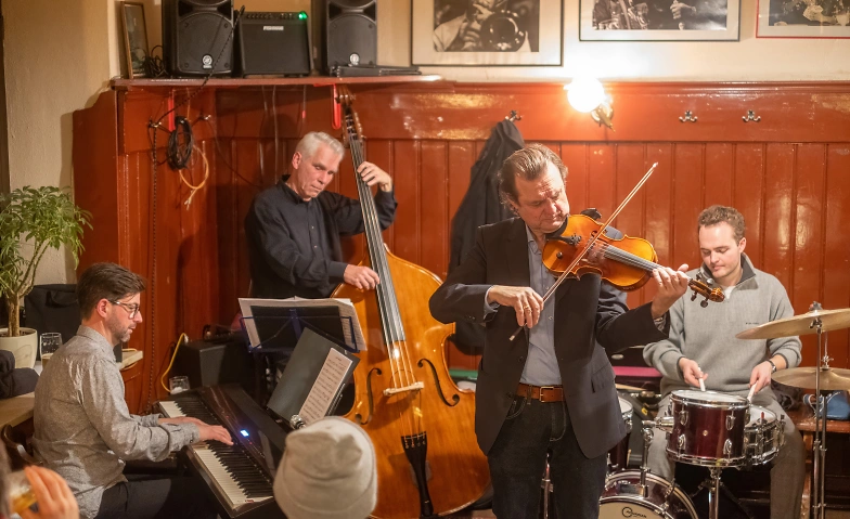 Im Jazzquartett „Like Standards“ musiziert der weltbekannte Jazzgeiger Joerg Widmoser mit seinem Sohn Leander Widmoser. Mit dabei sind der fantastische Pianist Andreas Gundlach aus Berlin und Bernhard Seidel am Bass.
