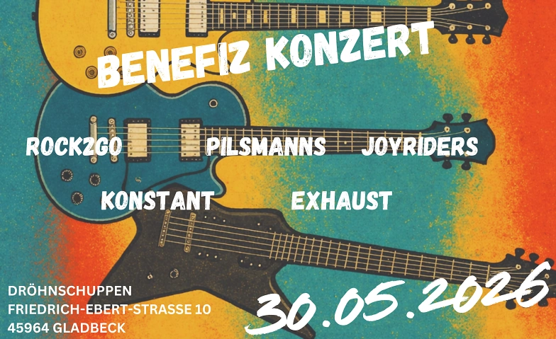 Du hast Lust auf einen bunten Abend mit Rock- und Popmusik, Liedern zum Mitsingen und auf eine bunte Mischung? Dann sei am 30. Mai beim Benefizkonzert im Dröhnschuppen dabei! Mehrere Bands bringen die Bühne zum Beben - laut, ehrlich und mit Herz.