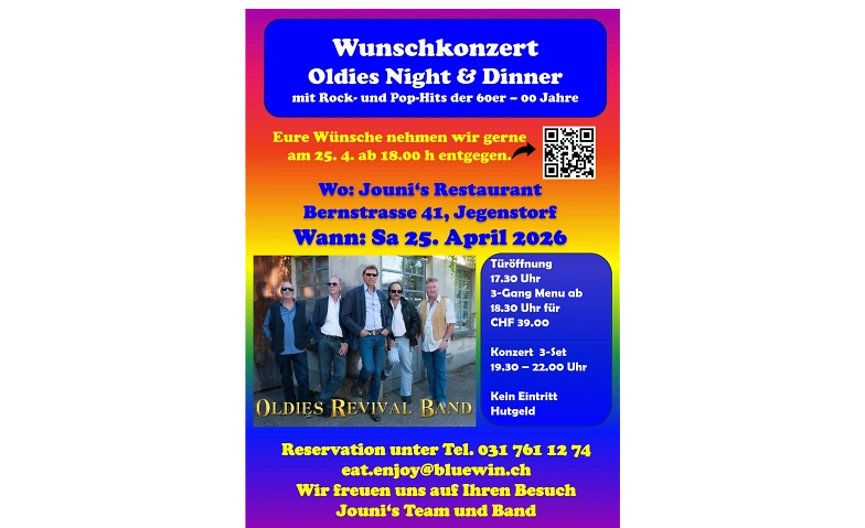 Oldies Revival Band Jounis Restaurant, Bernstrasse 41, 3303 Jegenstorf Tickets