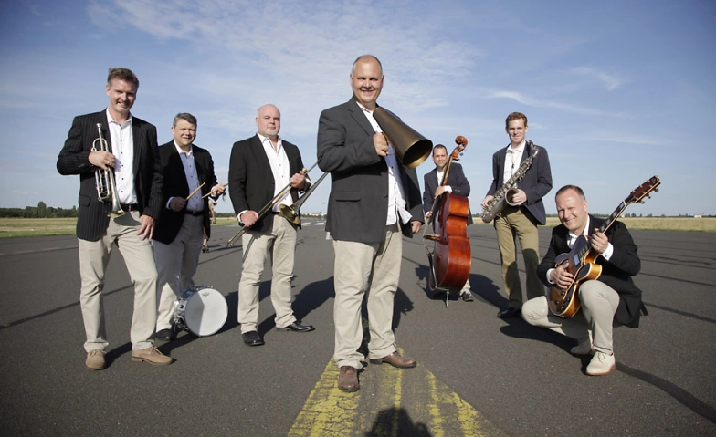 Die Dixie Brothers ziehen als Marching Band umher und sorgen mit schwungvollem Dixieland-Sound für beste Stimmung.