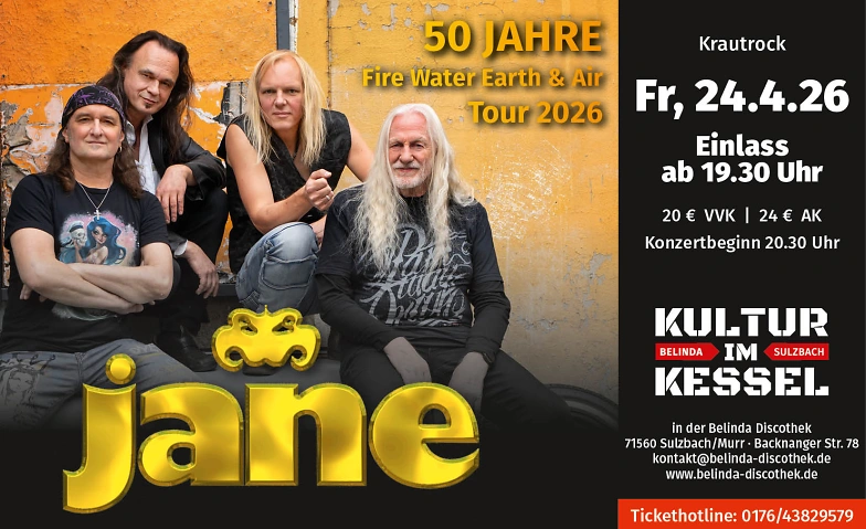 (Werner Nadolnys)  JANE – 50 Jahre  Fire Water Earth & Air T Belinda Areal, Backnanger Straße 78, 71560 Sulzbach an der Murr Tickets