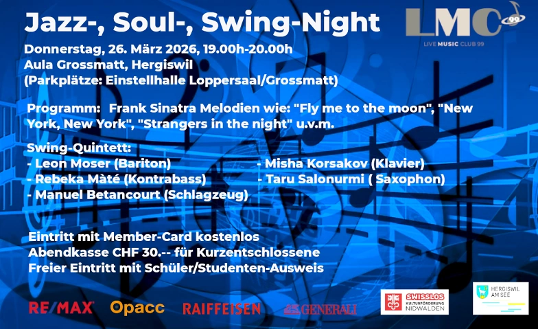 Swing-Night (Melodien von Frank Sinatra) Konzertsaal Aula Grossmatt, Grossmatt 5, 6052 Hergiswil Tickets