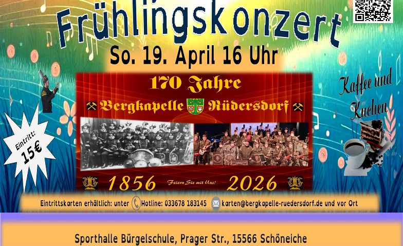 Schöneiche bei Berlin, 19. April 2026, 16 Uhr – Die Bergkapelle Rüdersdorf e.V. feiert ihr 170-jähriges Bestehen mit einem besonderen Frühlingskonzert in der Sporthalle der Bruno-Hans-Bürgel-Schule, Prager Straße 31a, 15566 Schöneiche bei Berlin. Unter dem Motto „170 Jahre Musik und kein bisschen leise“ erwartet die Besucher ein mitreißendes Programm voller Leidenschaft und musikalischer Highlights.