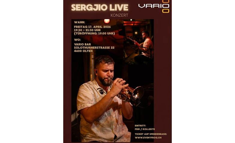 SERGJIO Live Konzert Vario Bar, Solothurnerstrasse 22, 4600 Olten Tickets