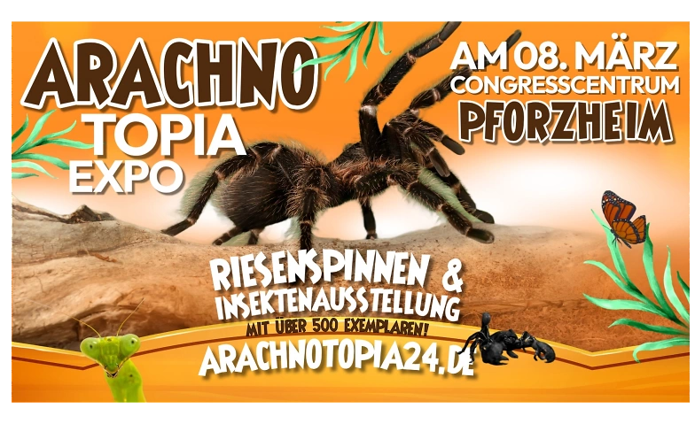 Am 08. März 2026 gastiert die außergewöhnliche Spinnen- und Insektenausstellung im CongressCentrum Pforzheim. Besucherinnen und Besucher erhalten die Gelegenheit, die faszinierende und oftmals unbekannte Welt der Wirbellosen aus nächster Nähe zu entdecken.
