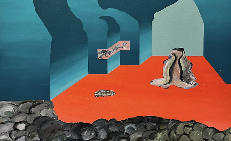 Credits: @Linda Stauffer,Tardigrade on a House Hunt, 60 x 90 cm, acrylic and oil on canvas, 2024