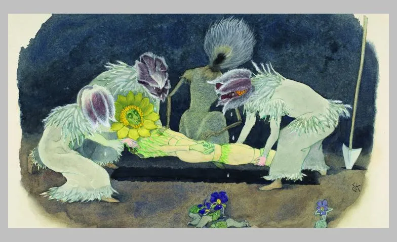 Letzter Ausstellungstag und letzte Führung: Die Sonderausstellung «Fahrt ins Licht. Ernst Kreidolf und der Kreislauf des Lebens» rückt einen weniger bekannten Aspekt in Kreidolfs Werk in den Fokus: die Auseinandersetzung mit dem Tod.