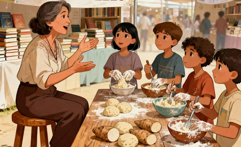 Amasando recuerdos: sabores que viajan es una actividad dirigida a niños y niñas de 8 a 12 años en el marco de la Feria LEES (Literatura en español en Suiza). El cuentacuentos se desarrolla en paralelo a la preparación de pan elaborado con almidón de Yuca, que los niños prepararán con ayuda de una monitora y que podrán llevarse a casa. Explorarán las raíces de este producto ancestral, base culinaria de tantos paises hispanoamericanos, conectándolas con su propia historia de migración.