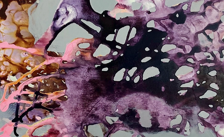 Credits: «flying roots», 2026 (Ausschnitt). Acryl/Tusche, 80 × 70 cm