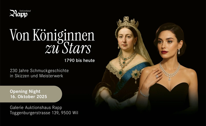 Dass diese einmalige Schau in der Schweiz möglich wird, verdanken wir einem leidenschaftlichen privaten Sammler, dem Archiv des Auktionshauses Rapp und weiteren Leihgebern. „Von Königinnen zu Stars“ ist ein Höhepunkt im 55-jährigen Jubiläum des Auktionshauses Rapp.