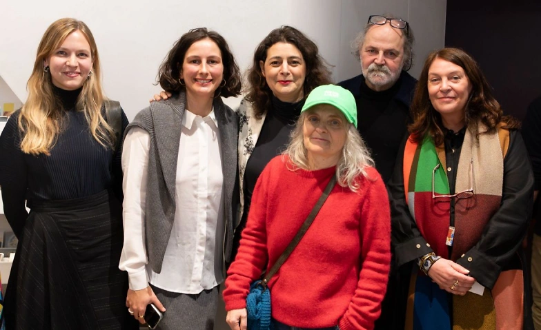 Aufdi Aufdermauer (Videocompany), Simona Ciuccio (Leiterin Sammlung + Ausstellungen Aargauer Kunsthaus), Tessa Prati (Wissenschaftliche Mitarbeiterin Aargauer Kunsthaus), Tuula Rasmussen (Wissenschaftliche Mitarbeiterin Kunstmuseum Solothurn), Katrin Steffen (Direktorin Kunstmuseum Solothurn) und Karin Wegmüller (Videocompany) führen im Dialog durch die Ausstellung Mehr Licht. Video in der Kunst, die sie gemeinsam kuratiert haben.