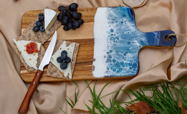 In this creative and hands-on workshop, you'll learn the art of mixing epoxy resin with a wide range of colors to design your very own personalized cutting/cheese board which you will take at home when the epoxy resin is dry (3-4 days after the workshop , your board will be ready for pick up or we could send your cutting board at home with an extra charge of 15 CHF)