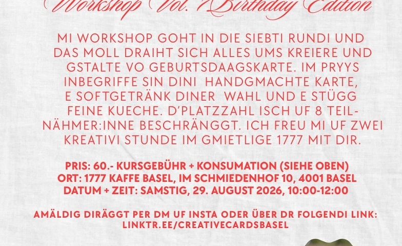 Ich freue mich auf zwei inspirierende und kreative Stunden mit dir! Deine Sarah von CREATIVECARDSBASEL 💌🙋🏻‍♀️