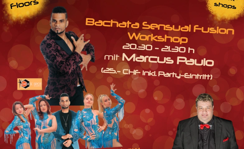 Lerne neue Bachata Sensual Fusion Figuren mit Marcus Paulo (Dance Spot Zürich) und tanze diese gleich anschliessend ab 21:30 Uhr an der Fiesta Pasión mit 3 Floors u.a. mit DJ Ñoño!