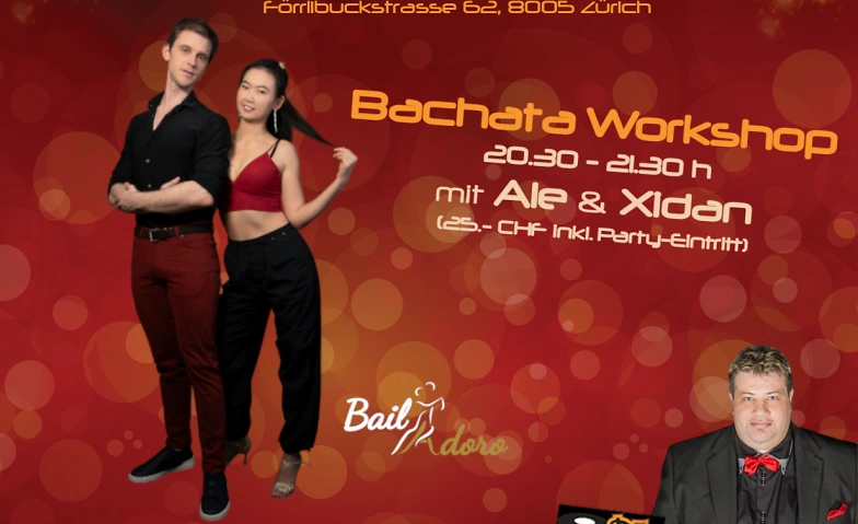 Lerne neue Bachata Sensual Workshop mit Ale & Xidan (BailAdoro) und tanze diese gleich anschliessend an der Fiesta Bachata ab 21:30 Uhr mit 3 Floors u.a. mit Bachata-Floor mit DJ Ñoño!