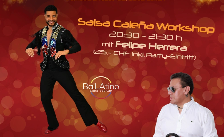 Lerne neue Salsa Caleña Figuren mit Felipe Herrera (BaiLatino)und tanze diese gleich anschliessed an der Fiesta Bachata ab 21:30 Uhr mit 3 Floors, u.a. mit Salsa-Floor mit DJ Pepe!
