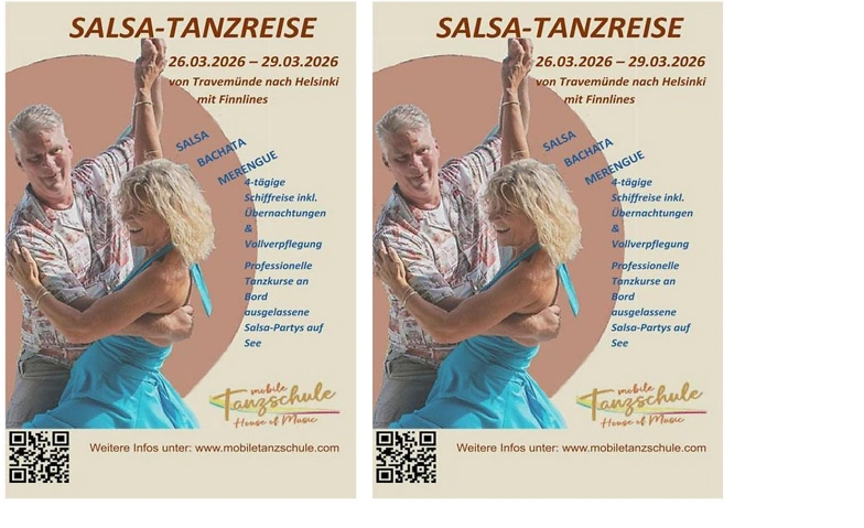 Salsa, Merengue und Bachata begleiten dich auf einer unvergesslichen Finnlines-Reise von Travemünde nach Helsinki mit Annette & Wolf vom House of Music, mobile Tanzschule.