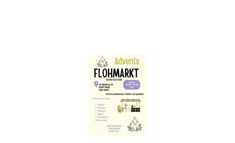 Annika Repp, Am Weinberg 50, Nidda, DEKategorie: Märkte / Flohmarkt