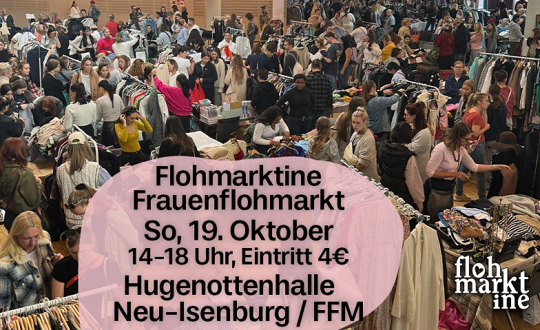 Sonntag, den 19. Oktober in Neu-Isenburg bei Frankfurt!🫶✨ Flohmarktine Frauenflohmarkt, das nachhaltige Shoppingevent in der Hugenottenhalle in Neu-Isenburg!🛍️🌿 Du liebst Kleidung, Vintage & Accessoires? Bei uns gibt es alles, was dein Frauenherz begehrt!🫶