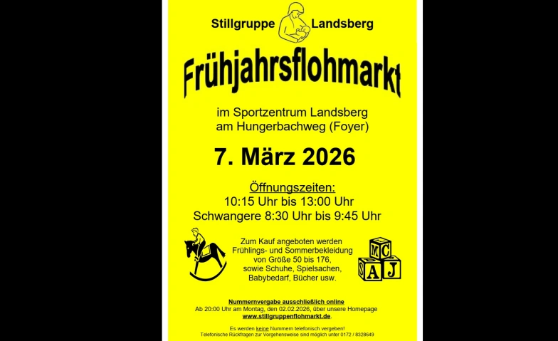 Am Samstag den 7. März 2026 findet der Frühjahrsflohmarkt der Stillgruppe Landsberg im Landsberger Sportzentrum (Hungerbachweg 1) statt.