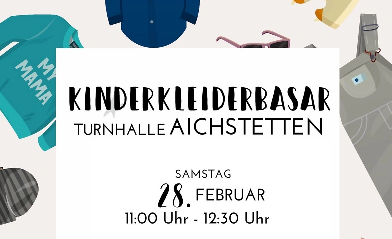 Am Samstag, den 28.02.2026 findet von 11:00 Uhr bis 12:30 Uhr in der Turn- und Festhalle Aichstetten der große Kleiderbasar statt.