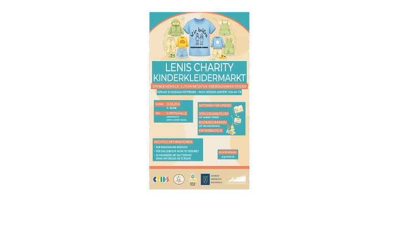 Wir veranstalten einen Charity-Kinderkleidermarkt zugunsten der Elterninitiative krebskranker Kinder der Vestischen Kinderklinik Datteln e.V.