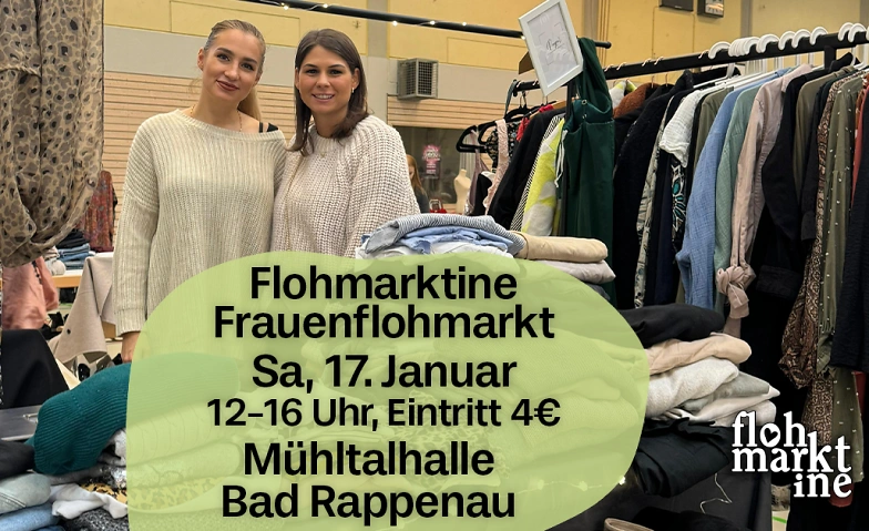 Samstag, den 17. Januar in Bad Rappenau!🫶✨ Flohmarktine Frauenflohmarkt, das nachhaltige Shoppingevent in der Mühltalhalle in Bad Rappenau!🛍️🌿 Du liebst Kleidung, Vintage & Accessoires? Bei uns gibt es alles, was dein Frauenherz begehrt!🫶