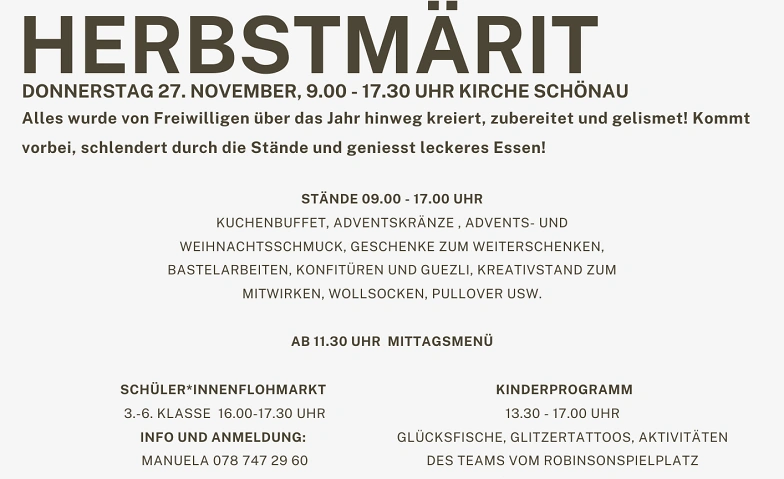 Herbstmärit Kirche Schönau, Bürglenstrasse 16, 3600 Thun Tickets