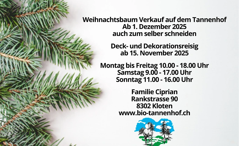 Christbaumverkauf Tannenhof, Rankstrasse 90, 8302 Kloten Tickets
