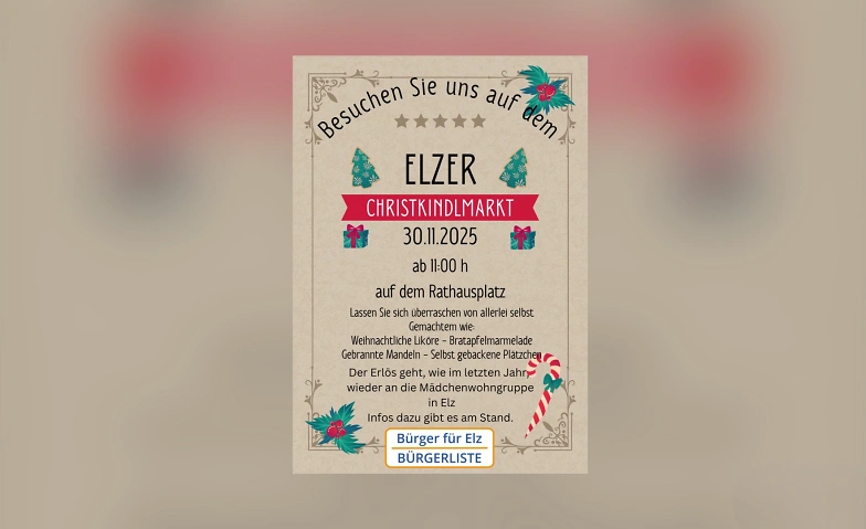 Besuchen Sie uns auf dem Elzer Christkindlmarkt – genießen Sie, plaudern Sie, und helfen Sie mit, Gutes zu tun!