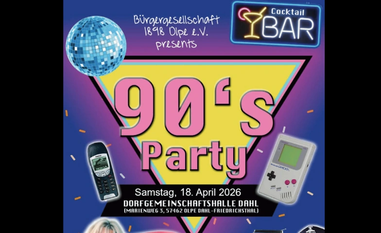 Holt eure Neon-Leggings, Plateau-Schuhe und Buffalo-Stiefel raus, denn wir beamen euch zurück in die wilden 90er! Am 18. April steigt die ultimative 90er-Party in der Dorfgemeinschaftshalle in Dahl – und ihr seid mittendrin!