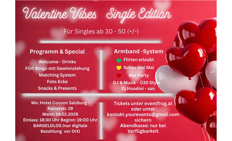Valentine Vibes – Singles Edition Hotel Cocoon Salzburg, Rainerstraße 29, 5020 Salzburg Tickets