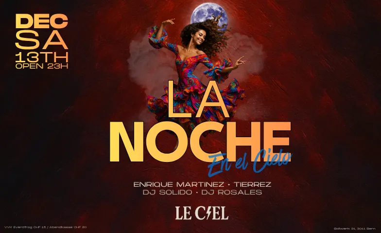 La Noche ist zurück und feiert im neuen Zuhause: Le Ciel Bern. Eine Nacht voller Rhythmus, Leidenschaft und purer Latin-Energie wartet auf dich. Reggaeton, Bachata, Urban Music und House verschmelzen zu einem Sound, der niemanden stillstehen lässt.