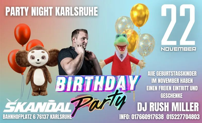 22 ноября празднуем вечеринку в честь дней рождения в клубе SKANDAL (Карлсруэ)!